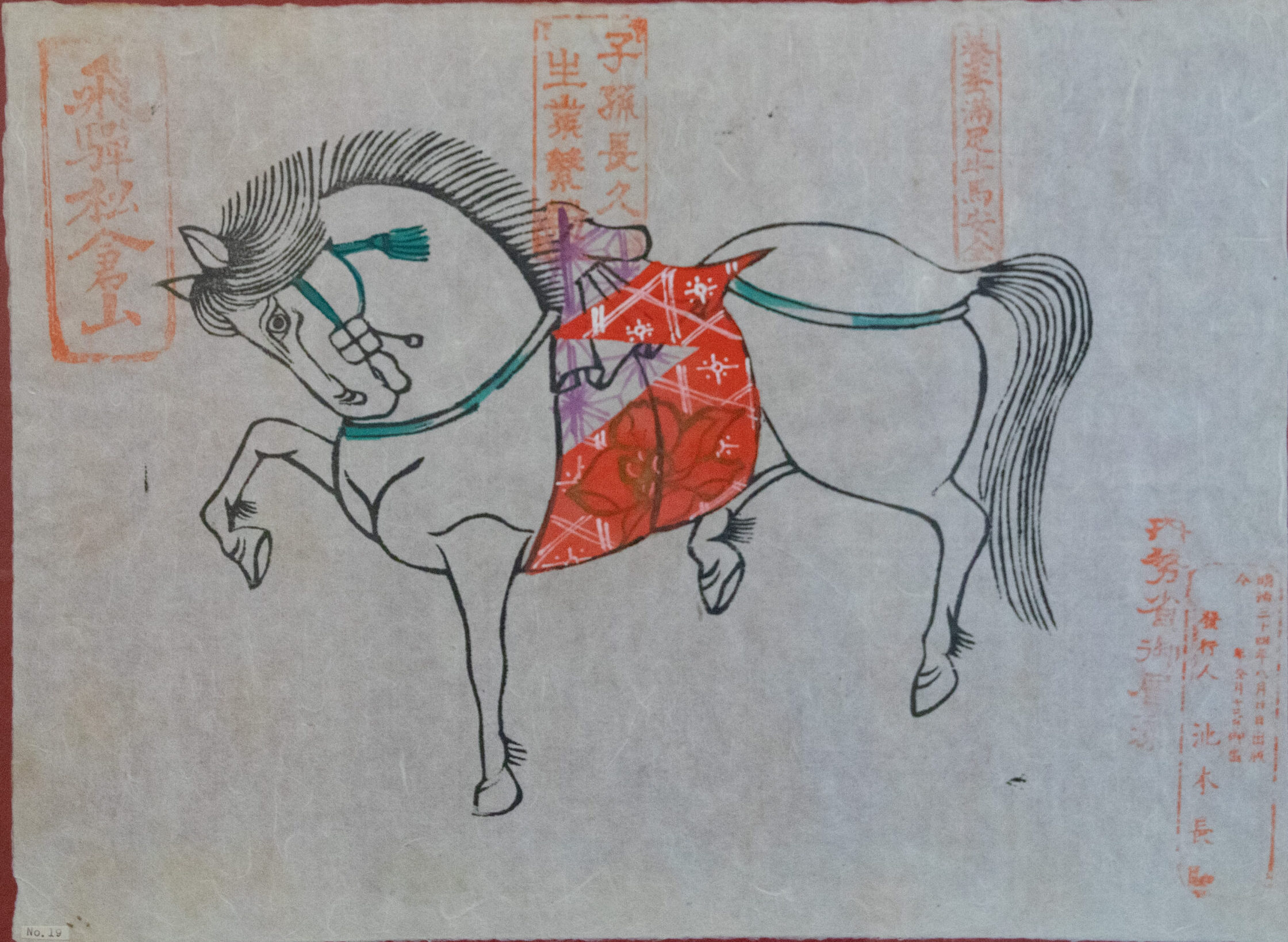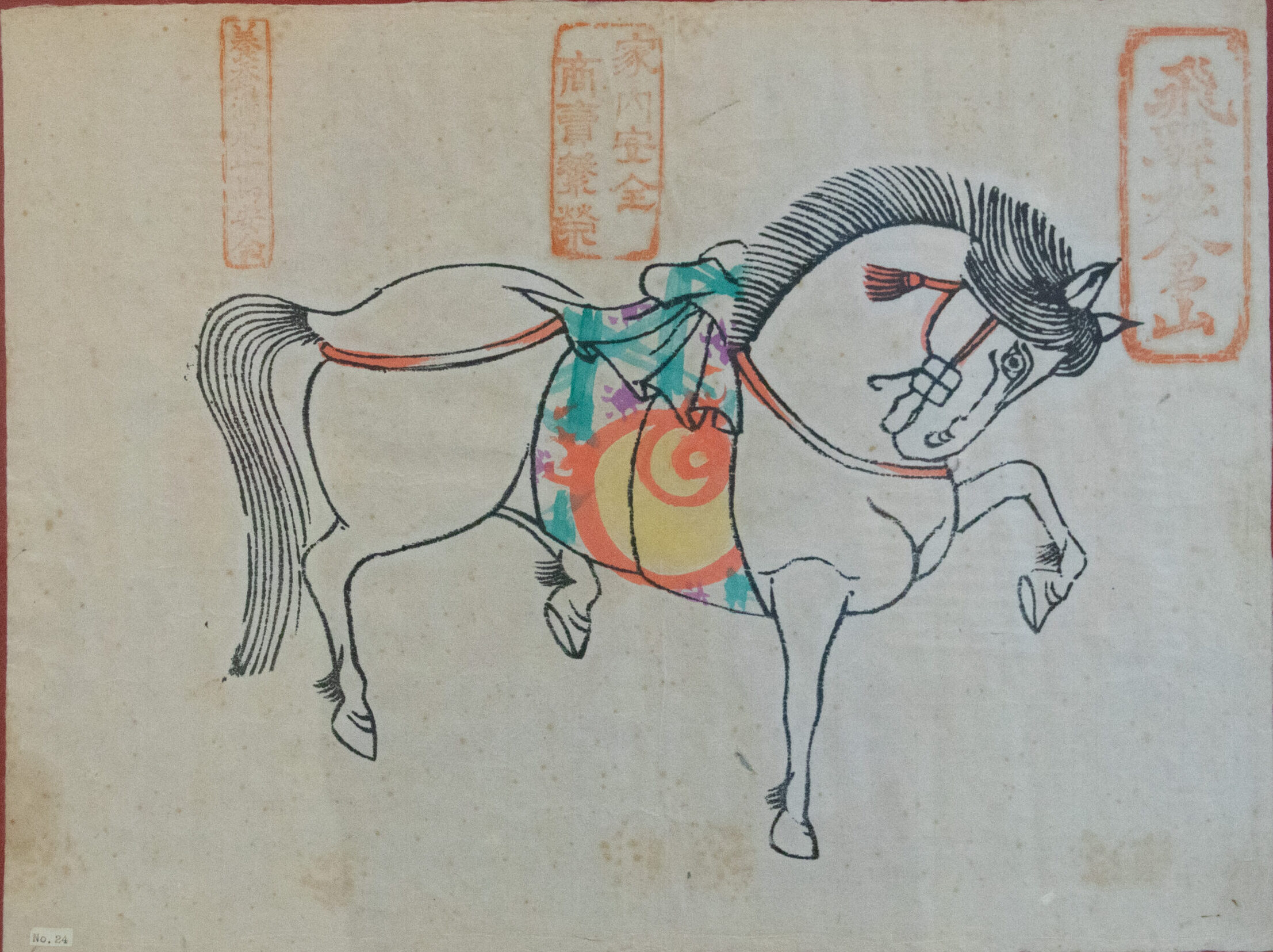 Le cheval est le septième des douzes animaux du zodiaque chinois. Il est associé à des valeurs de vitalité, de liberté, et d’énergie. Il est souvent perçu comme un symbole de mouvement et de réussite. En plus de la symbolique chinoise, au Japon il est également un animal chargé de sens car historiquement lié aux sanctuaires shintô où il était considéré comme une monture des divinités, ce qui explique la tradition des ema qui sont des plaques de bois ou des feuilles représentant un cheval, sur lesquelles sont inscrits des voeux ou des prières.